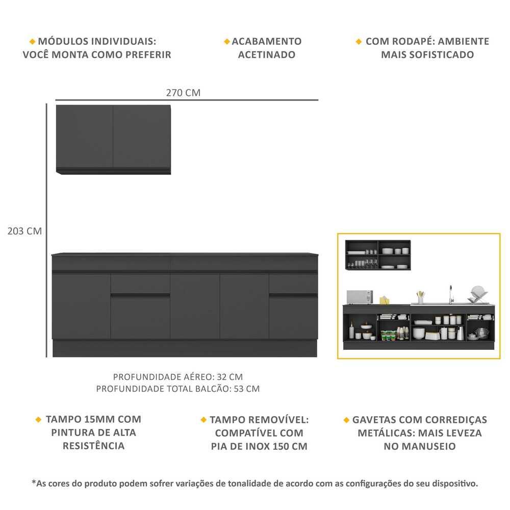 Armário de Cozinha Compacta com Rodapé Veneza Multimóveis MP2111.895 Preto