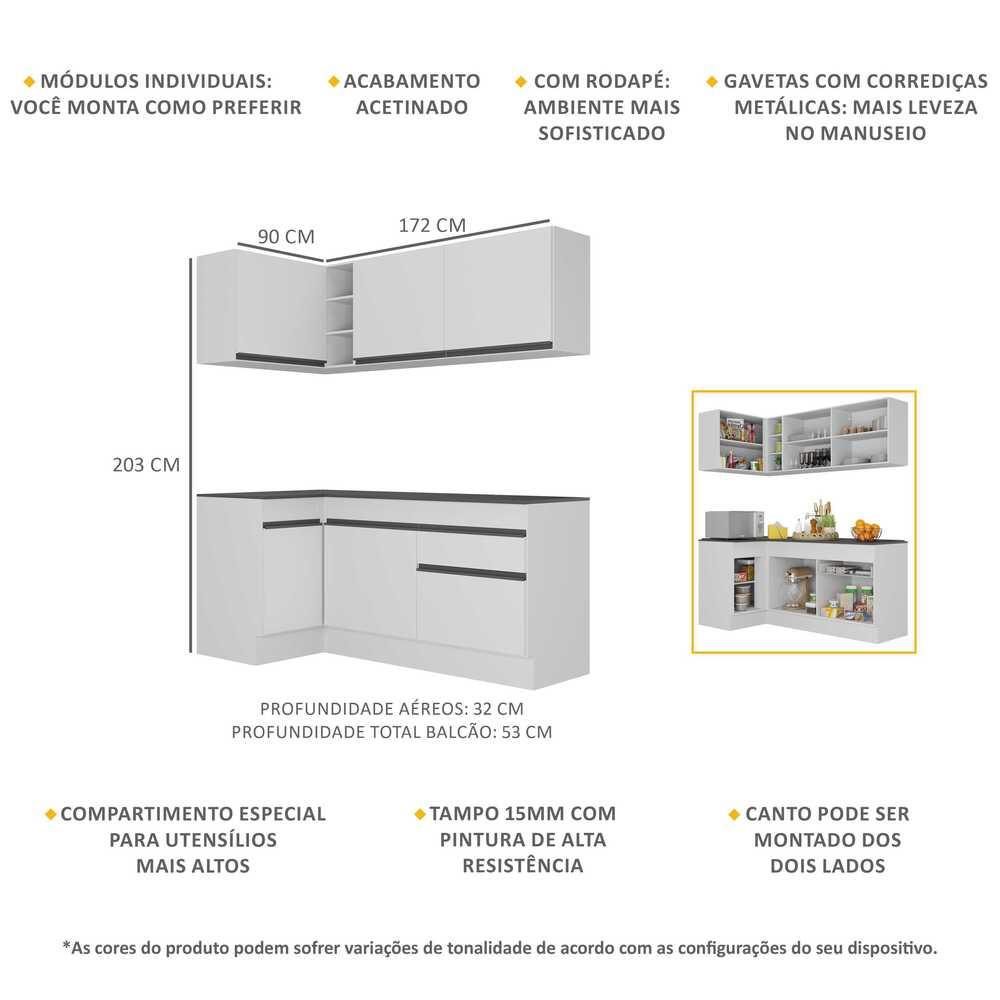 Armário de Cozinha Compacta de Canto com Rodapé Veneza Multimóveis MP2092.964 Branco/Preto
