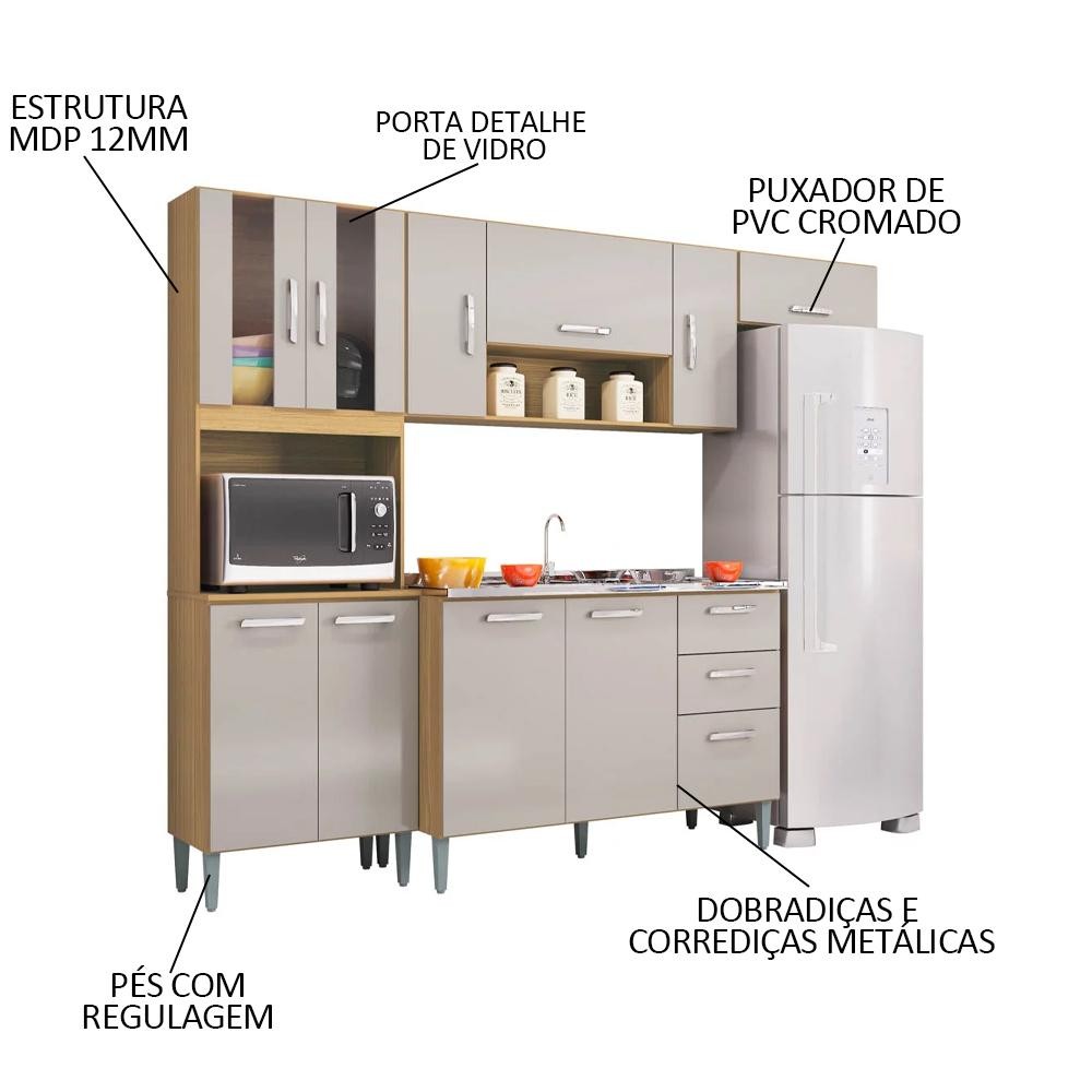 Você sofre com falta de espaço na sua cozinha? Calma! Com o Armário de Cozinha Compacta e Balcão para Pia sem Tampo 244cm Livy P11 Damasco/Off White, da Mpozenato, nunca mais você terá coisas espalhadas na cozinha. Vem conferir! Com um design criativo que se encaixa perfeitamente em qualquer cozinha pequena, esse armário para cozinha com onze portas oferece bastante espaço para armazenar todos os itens essenciais, desde louças, potes herméticos e eletrodomésticos. Afinal, quer você seja um entusiasta da culinária ou simplesmente queira preparar refeições rápidas, essa cozinha compacta tem tudo o que você precisa para deixar a sua rotina mais prática e a sua vida mais organizada. Além disso, o balcão pode receber um tampo para pia, o que facilita ainda mais a rotina, afinal, você terá tudo o que precisa em um único móvel. Atualize sua casa hoje mesmo, adicione a Cozinha Completa Livy ao seu carrinho e surpreenda-se. Confira mais detalhes a seguir. Dimensões dos Produtos Kit Cozinha: 244 x 197 x 38 cm. Balcão: 120 x 84 x 52 cm. Peso: 72 kg. **IDEAL PARA PIA 120CM / NÃO ACOMPANHA PIA INOX Características do Produto Material da estrutura: MDP 12mm. Acabamento: Pintura UV. Escala de Brilho: Fosco/Brilho. Peso Suportado: 82 kg distribuídos. Quantidade de Portas: 11 Portas. Tipo de Porta: Convencional. Quantidade de Gavetas: 2 Gavetas. Quantidade de Prateleiras: 2 Prateleiras. Quantidade de Nicho: 2 Nichos. Possui Pés: Sim. Altura dos Pés: 16,5 cm. Material dos Pés: Plástico. Tipo de Puxador: Plástico Cromado. Acompanha Tampo: Não. Diferenciais: - Design compacto. - Pés com regulagem. - Dobradiças e corrediças metálicas. - Porta basculante com pistão a gás. - Duas portas com detalhe em vidro. - NÃO ACOMPANHA TAMPO. IDEAL PARA INSTALAÇÃO DE CUBA DE PIA. Sistema de Montagem: Parafusos/Cavilhas/Minifix. Manual de Montagem: Sim. Complexidade da Montagem: Alta. Volumes: 3 Volumes. Conteúdo da Embalagem: 1 Cozinha Compacta, 1 Balcão. Garantia do Fabricante: 90 dias contra defeito de fabricação. Montagem: Recomendamos que seja feita por um profissional. Recomendação de Limpeza: Utilize pano levemente úmido. Observações importantes - Produto para uso residencial em ambiente interno, não devendo ficar exposto diretamente ao sol, calor e umidades excessivas. - Pode haver alguma diferença de tonalidade entre a imagem e o produto real, por conta do tratamento de imagens e a calibração de cores do seu monitor. - As imagens são meramente ilustrativas, não acompanham objetos de decoração e eletrônicos. - Confira o estado da embalagem, não devendo assinar o comprovante em caso de danos. - Não asseguramos, no ato da entrega, por subir escadas/elevadores, pelo transporte por guincho em apartamentos ou montagem, desmontagem e instalações. Eventuais despesas são por conta do comprador. - Confira as dimensões do produto e certifique-se de que passará normalmente por supostos elevadores, portas, escadas e/ou corredores de sua residência.