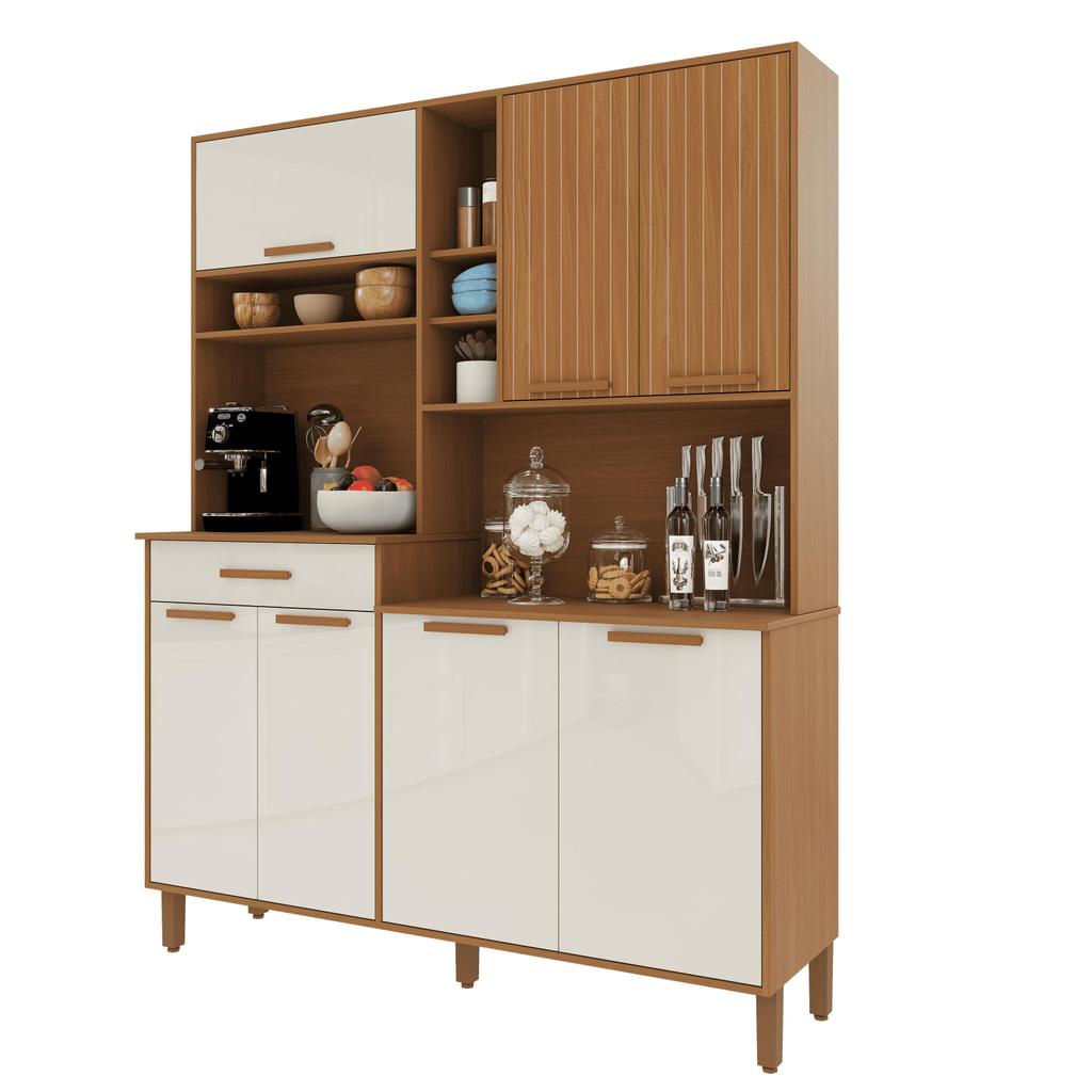 Armário De Cozinha Compacta Fidelitá Amsterdã 160cm 7 Portas 1 Gaveta Com Tampo e Fundo Freijó/Off-White