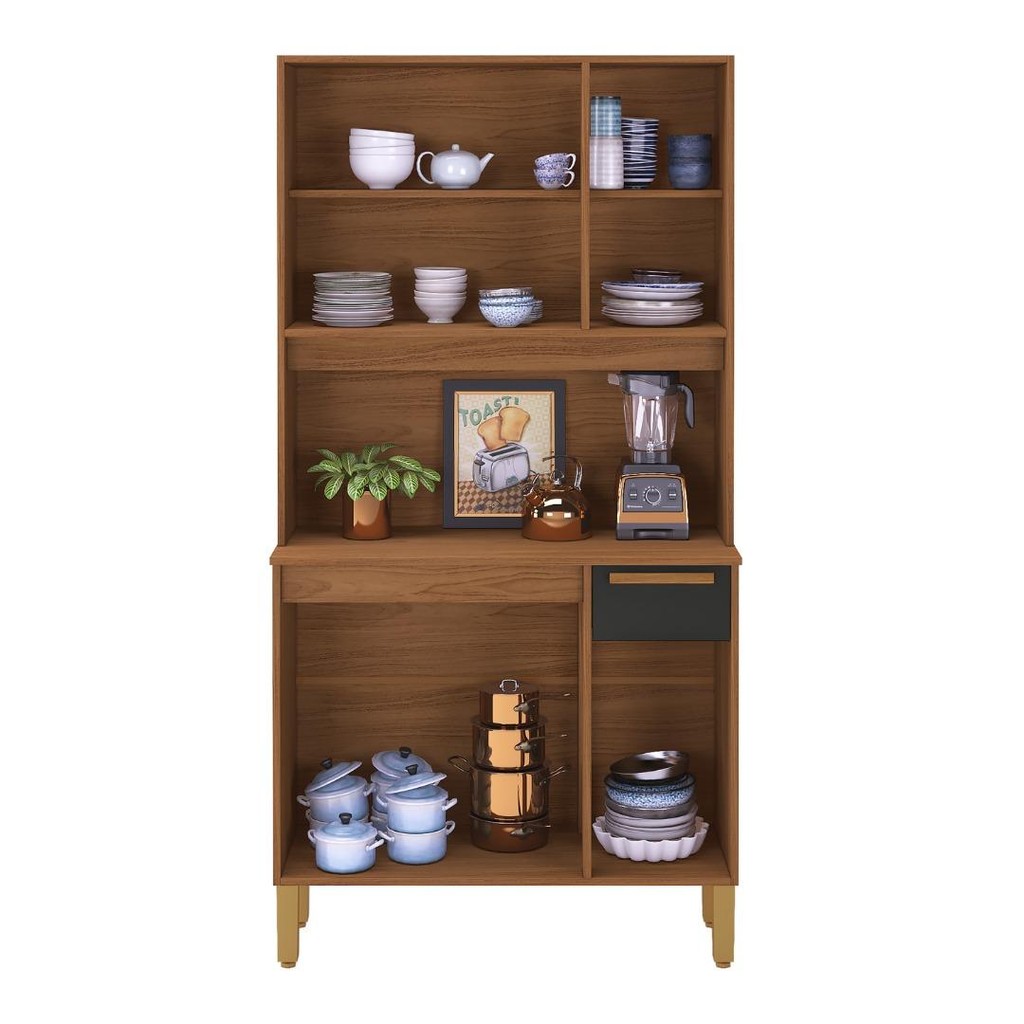 O Armário de Cozinha Bari da Fidelitá é a opção ideal para quem busca funcionalidade em um espaço reduzido, sem abrir mão do design moderno e elegante. Com 6 portas e 1 gaveta, oferece organização inteligente para utensílios, louças e mantimentos. A estrutura conta com portas com dobradiças metálicas, gaveta com corrediças metálicas e tampo maciço de 15mm, capaz de suportar até 40kg, ideal para uso com eletros ou objetos decorativos. Os puxadores em MDF, o acabamento UV e os pés com regulagem de altura completam o conjunto com estilo e durabilidade. O toque especial está nas cores: - Chumbo com pintura UV Touch Fosca - Freijó com acabamento amadeirado UV Touch Medidas: - Altura: 178cm - Largura: 90cm - Profundidade: 36cm (parte inferior) | 24cm (parte superior) Destaques do Produto: - 6 portas com dobradiças metálicas – maior durabilidade e estabilidade - 1 gaveta com corrediças metálicas – abertura suave e segura - Tampo superior em MDP 15mm, com capacidade de até 40kg - Suporte interno: 3kg na gaveta, 5kg nas prateleiras superiores, 15kg na base inferior - Puxadores em MDF com acabamento moderno - Pés com regulagem de altura – ideal para nivelamento em pisos irregulares - Acabamento em pintura UV perolizada e amadeirada de alta qualidade Informações Importantes: - Montagem: Produto enviado desmontado com manual de instalação e ferragens inclusas. A Fidelitá Móveis não realiza montagem. - Garantia: 6 meses contra defeitos de fabricação. - Imagem meramente ilustrativa. Perguntas Frequentes: P: O armário suporta eletrodomésticos sobre o tampo? Sim! O tampo de 15mm maciço suporta até 40kg, ideal para eletroportáteis como micro-ondas, air fryer e cafeteiras. P: A gaveta tem boa resistência ao uso diário? Sim. A gaveta possui corrediças metálicas e suporta até 3kg, sendo indicada para talheres, panos ou utensílios leves. P: As prateleiras internas suportam objetos pesados? As prateleiras superiores suportam até 5kg cada, enquanto a base inferior suporta até 15kg, ideal para panelas ou eletros pequenos. P: Os puxadores são em plástico ou madeira? São em MDF, com acabamento resistente e visual elegante. P: O armário possui regulagem nos pés? Sim! Os pés contam com regulagem de altura, garantindo estabilidade mesmo em pisos desnivelados.
