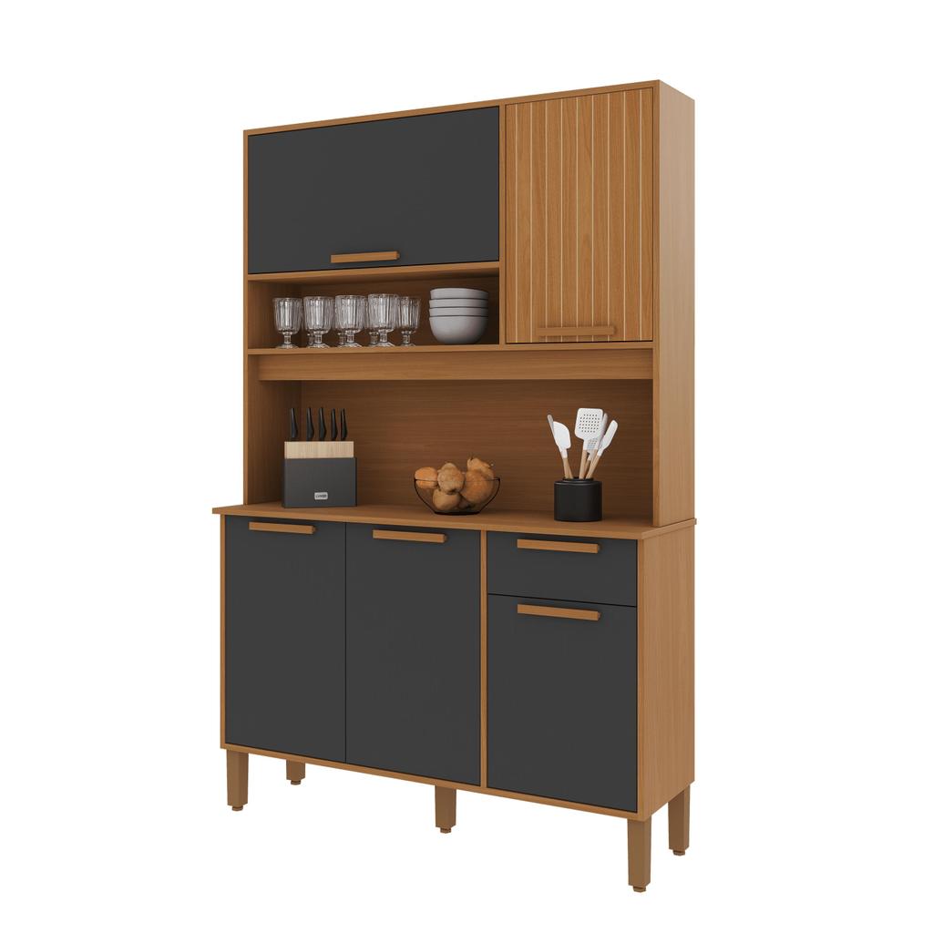 Armário De Cozinha Compacta Fidelitá Veneza 120cm 5 Portas 1 Gaveta Com Tampo e Fundo Freijó/Chumbo