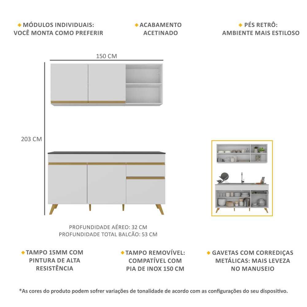 Armário de Cozinha Compacta Gourmet Veneza Multimóveis MP2142.156 Branco