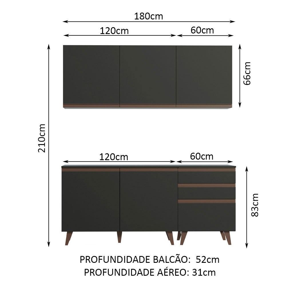 Armário de Cozinha Compacta Madesa Reims com Balcão 5 Portas 3 Gavetas Preto