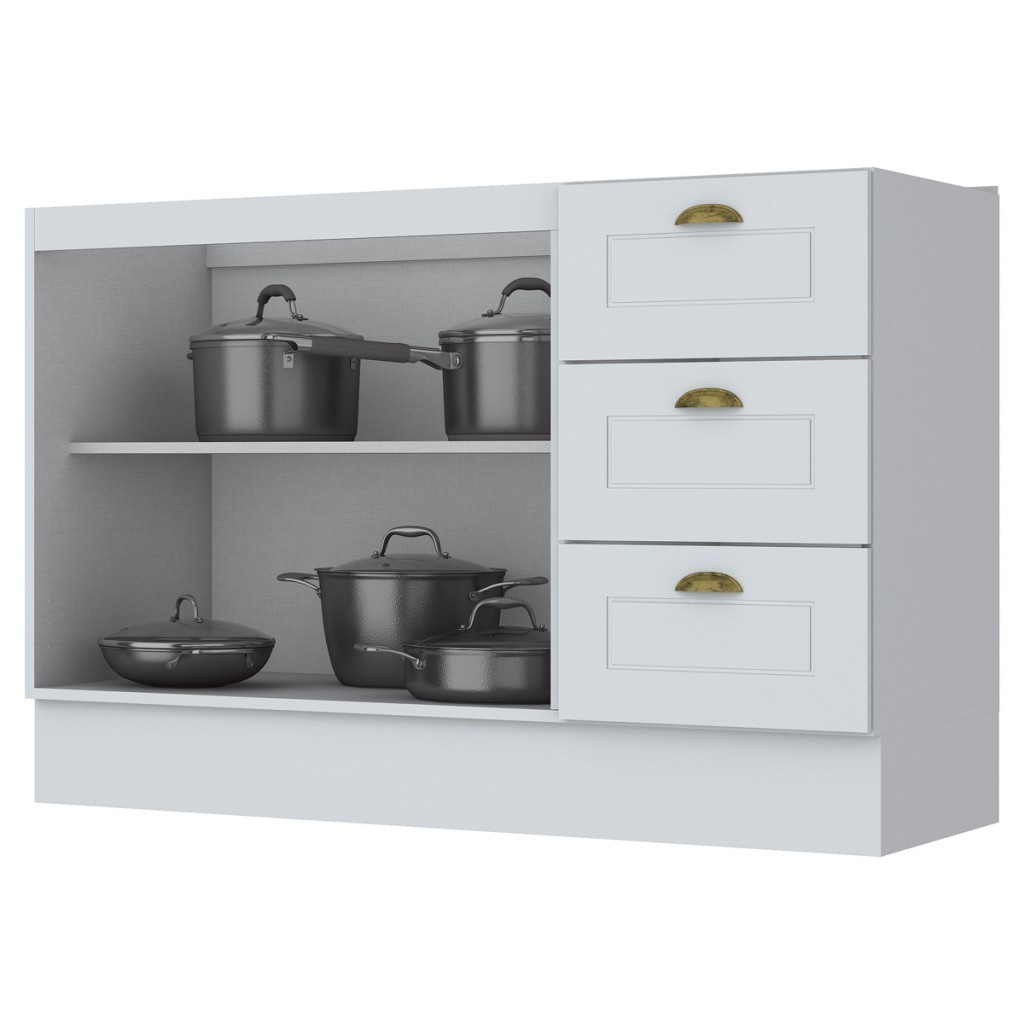 Armário de Cozinha Compacta para Pia 120 Cm Americana 2 Portas 3 Gavetas 100% Mdf Branco Hp - Pnr Móveis