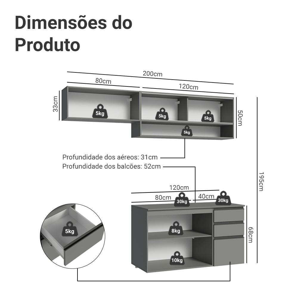 Armário de Cozinha Compacta Suspenso 200cm Cinza Nice Madesa 12