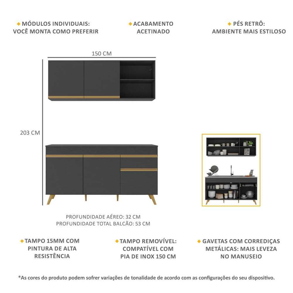 Armário de Cozinha Compacta Veneza Multimóveis MP2142.130 Preto