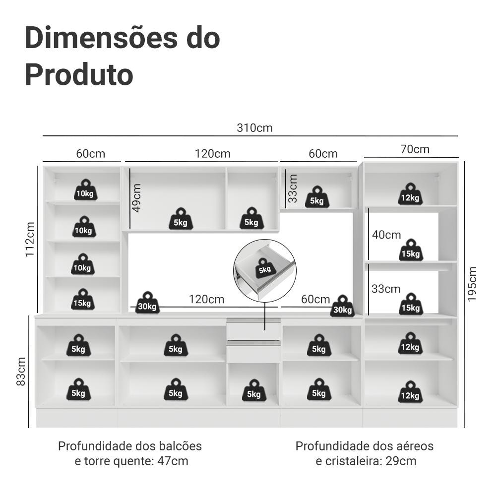 Armário de Cozinha Completa 100% MDF 310 cm Branco Smart Madesa 03