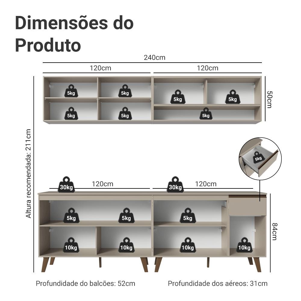 Armário de Cozinha Completa 240 cm Crema Nice Madesa 03
