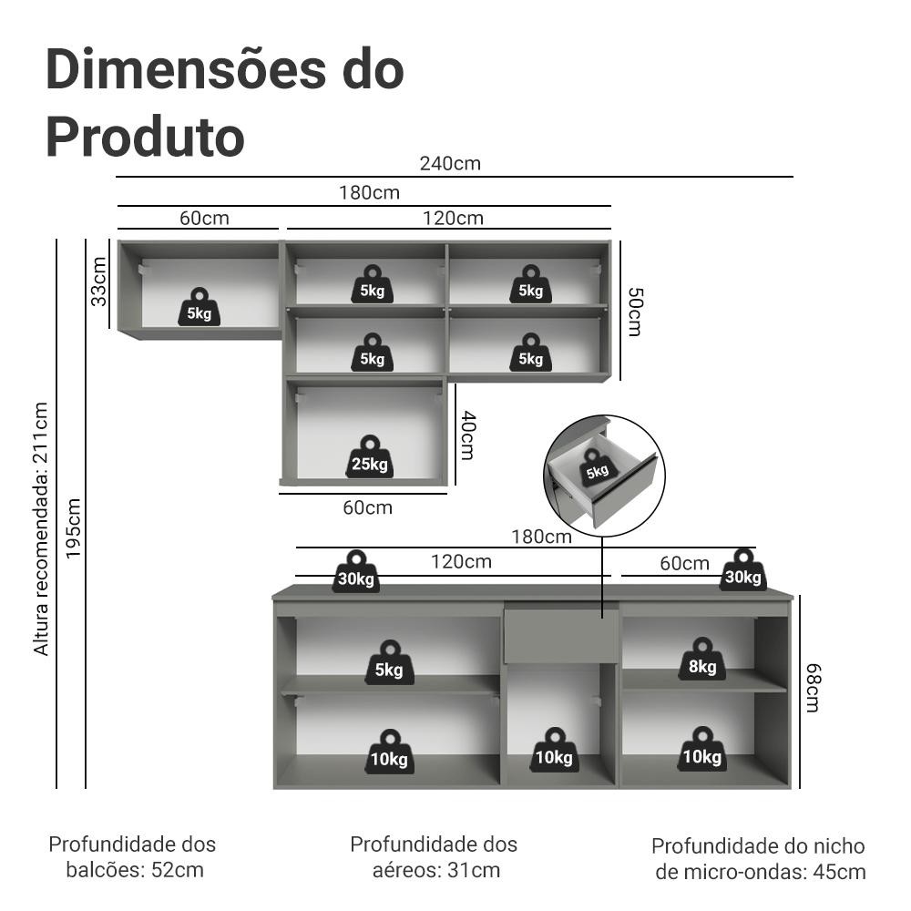 Armário de Cozinha Completa 240 cm Suspensa Nice Madesa 07