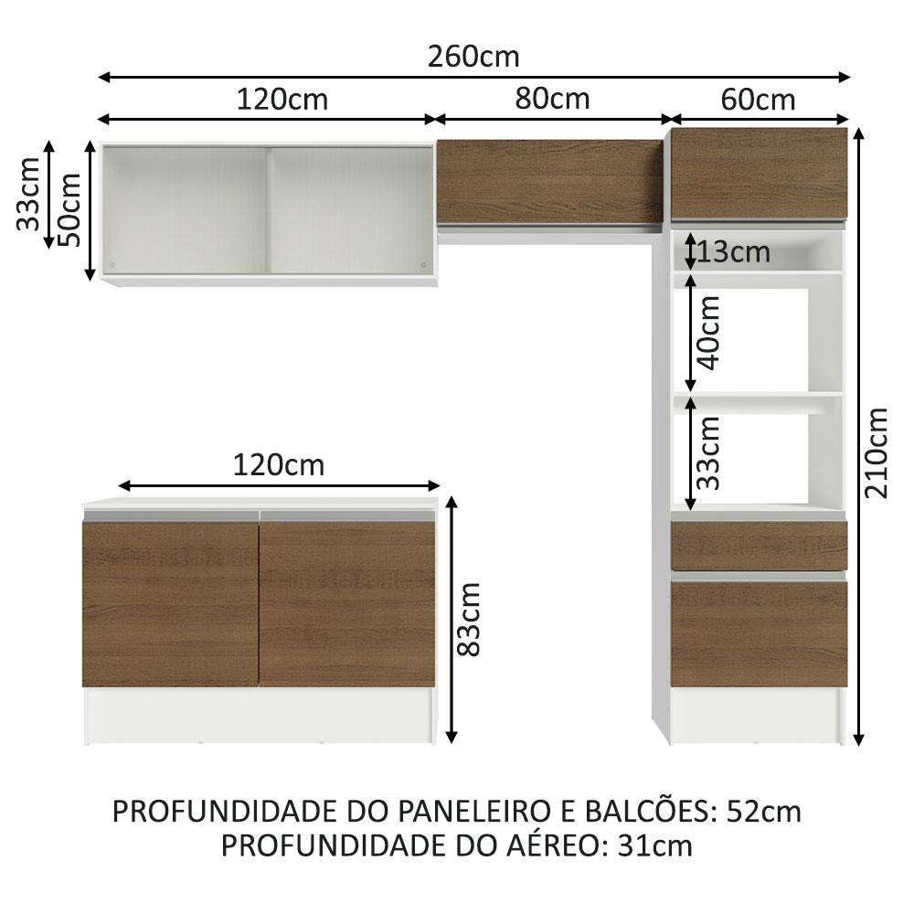 Armário de Cozinha Completa 260cm Branco/Rustic Topazio Madesa 01