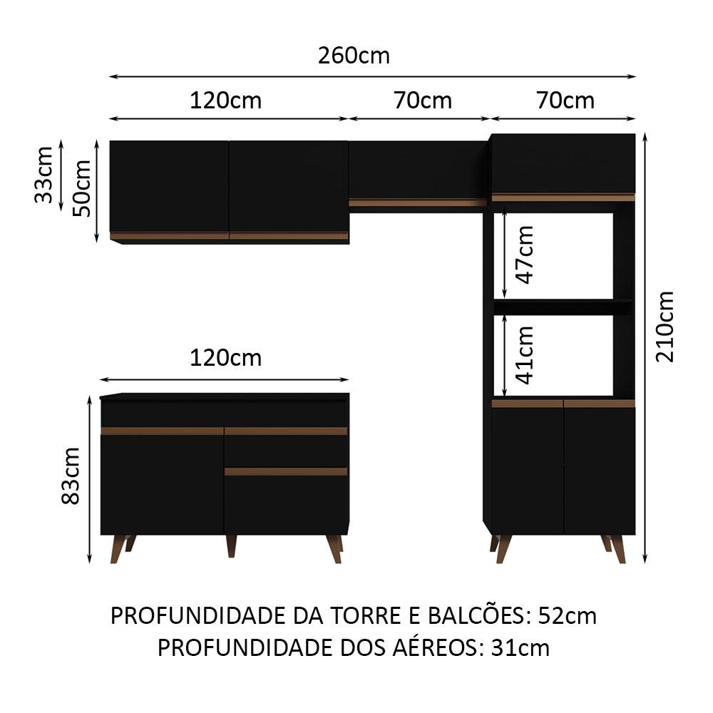 Armário de Cozinha Completa 260cm Preto Reims Madesa 09
