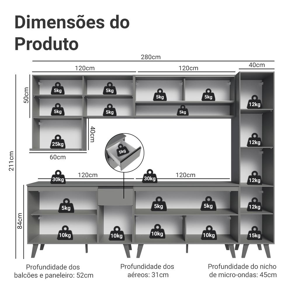 Armário de Cozinha Completa 280 cm Cinza Nice Madesa 03