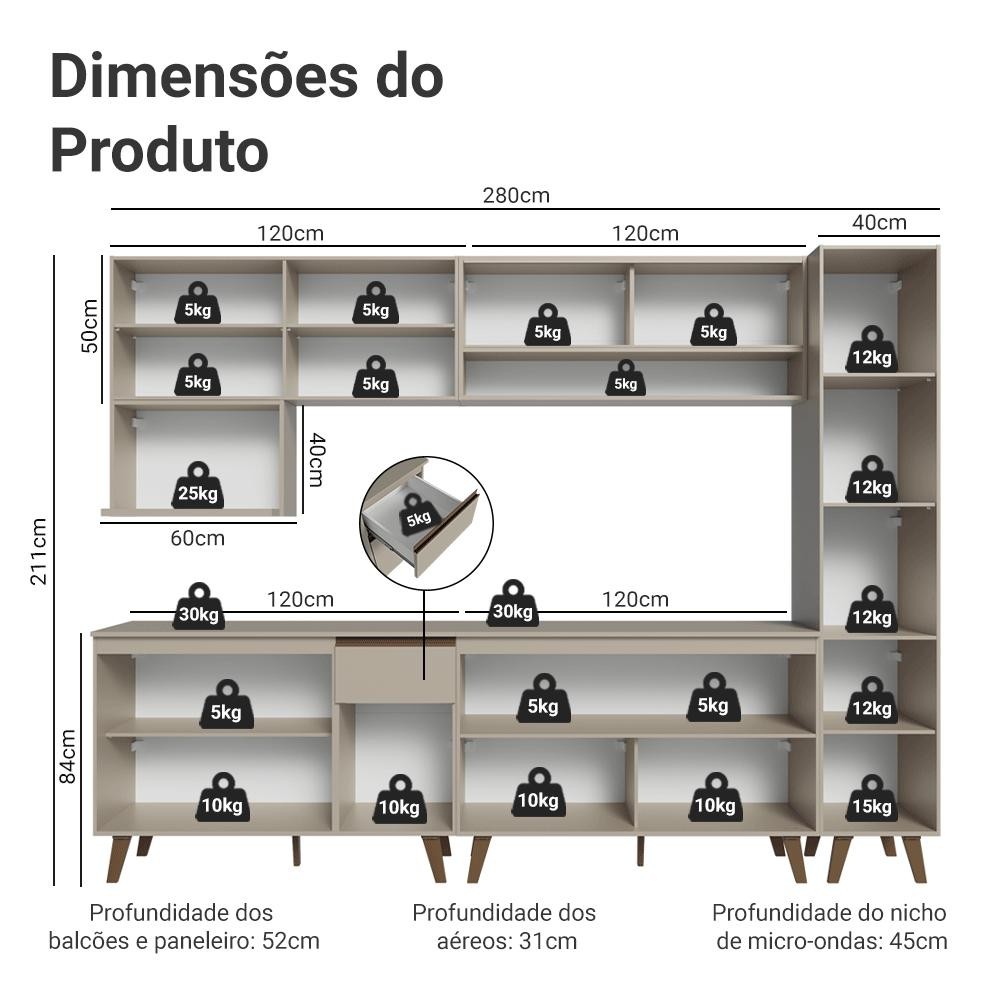 Armário de Cozinha Completa 280 cm Crema Nice Madesa 03