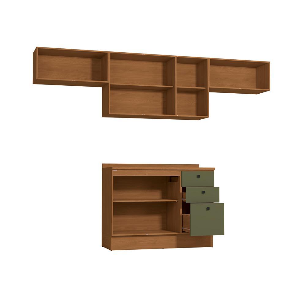 Armário de Cozinha Completa 280cm Canela/Verde Frevo Pixel Kappesberg