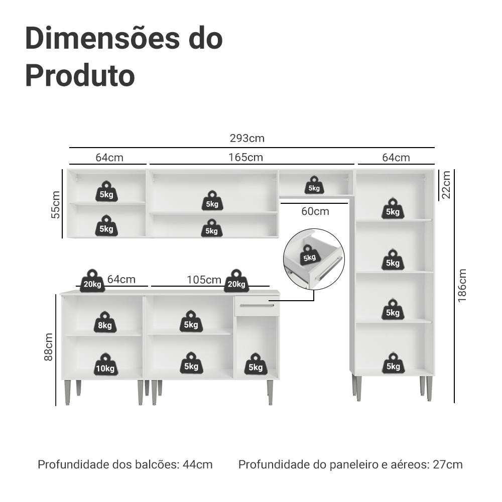 Armário de Cozinha Completa 293cm Branco Emilly Madesa 01