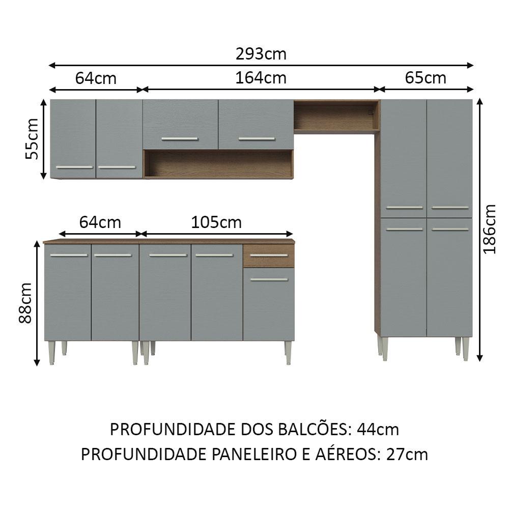 Armário de Cozinha Completa 293cm Rustic/Cinza Emilly Madesa 10