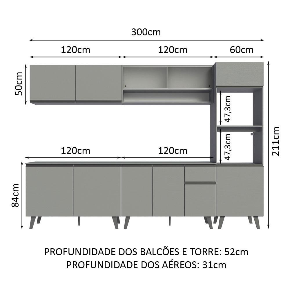 Armário de Cozinha Completa 300 cm Nice Madesa 02