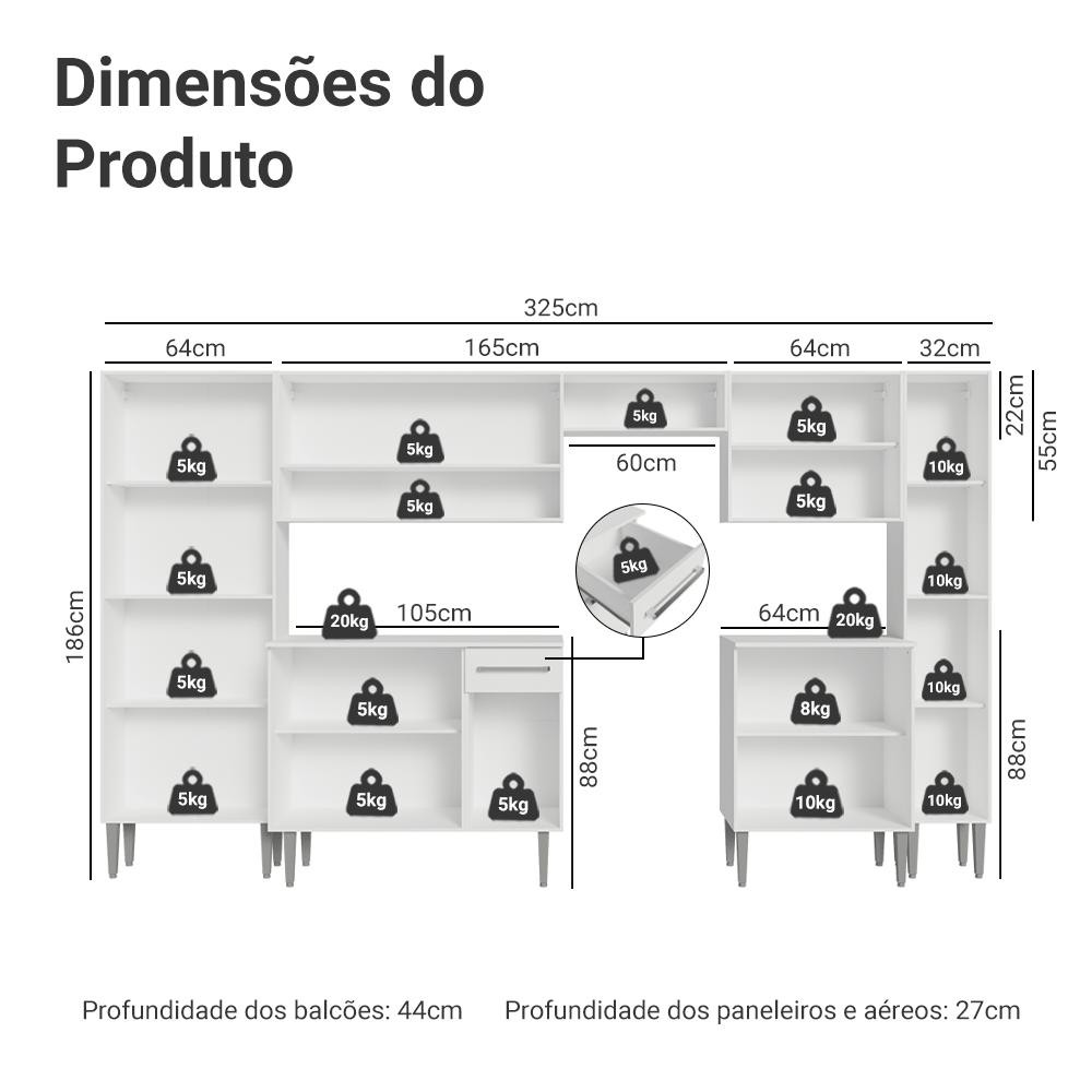 Armário de Cozinha Completa 325cm Branco Emilly Madesa 01