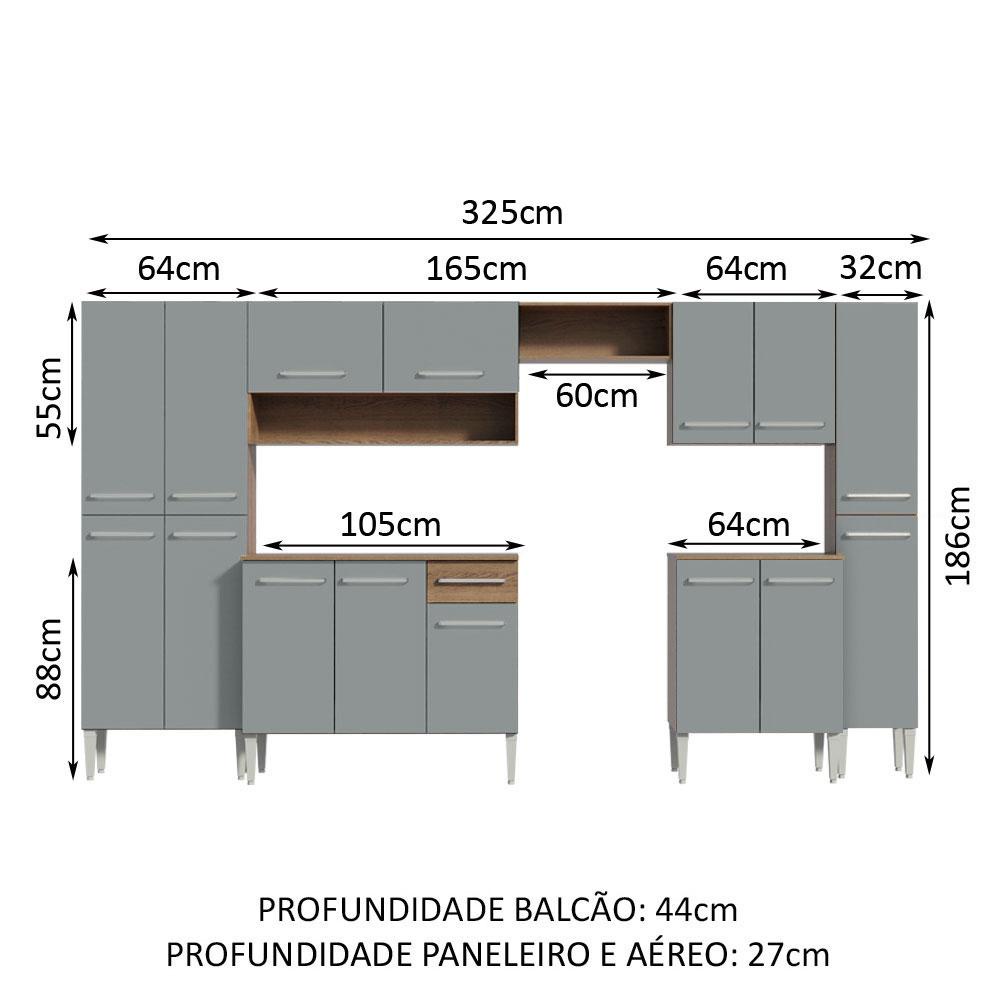Armário de Cozinha Completa 325cm Cinza/Rustic Emilly Joy Madesa 01