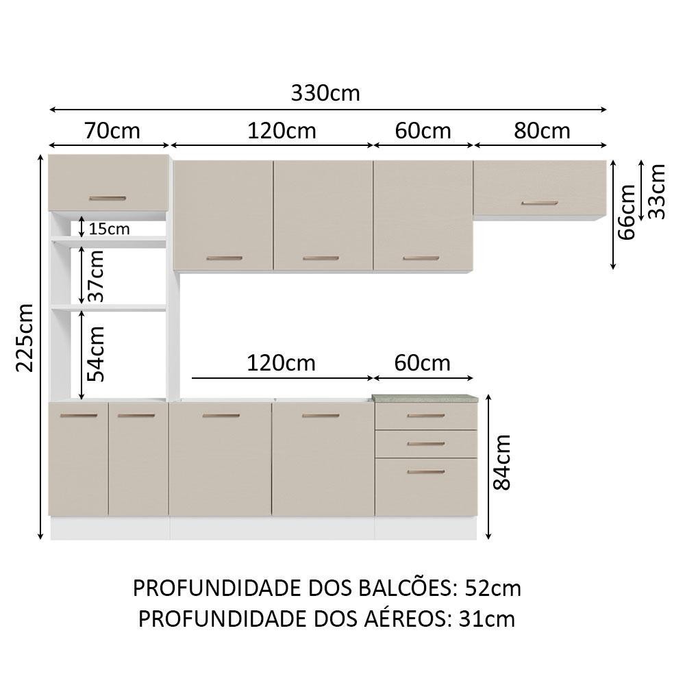Armário de Cozinha Completa 330cm Branco/Crema Agata Madesa 01