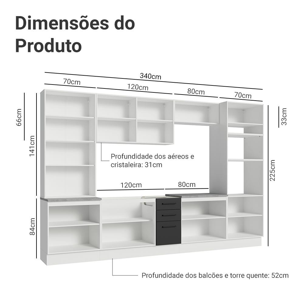 Armário de Cozinha Completa 340cm Branco/Preto Agata Madesa 01