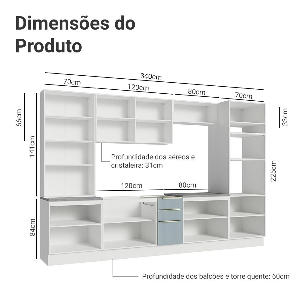 Armário de Cozinha Completa 340cm Lux Madesa 02