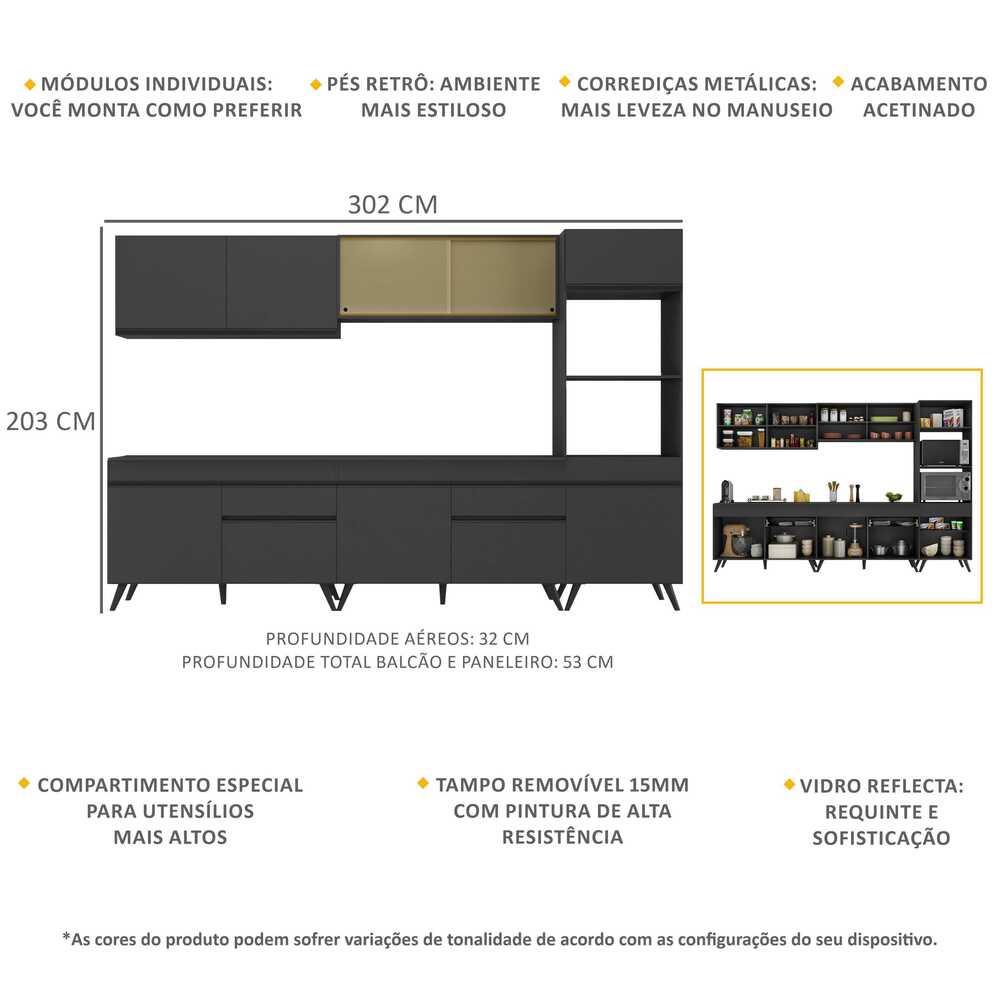 Armário de Cozinha Completa 5 peças MP3689.895 Veneza Multimóveis Preto