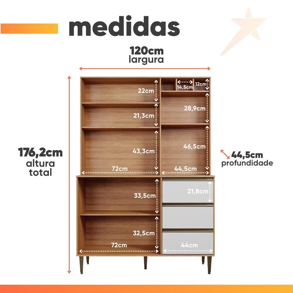 Transforme sua cozinha com o armário Itália de design elegante e moderno, e sua instalação não exige furar a parede, ideal para quem busca aliar estilo e funcionalidade. Fabricado com materiais de alta qualidade e acabamento em pintura UV, garante maior durabilidade e resistência ao uso diário. Seu amplo espaço interno oferece excelente capacidade de armazenamento, com compartimentos bem distribuídos para manter tudo organizado, com espaço para garrafas adicionando um toque de sofisticação. As portas com dobradiças de pressão proporcionam um fechamento suave e silencioso, enquanto as gavetas com corrediças telescópicas asseguram um deslizamento leve e preciso. Além disso, o móvel conta com pés reguláveis, permitindo melhor nivelamento e estabilidade em qualquer superfície. Uma peça versátil, perfeita para complementar cozinhas, salas ou escritórios com sofisticação e praticidade. MEDIDAS ARMÁRIO: A = 176,2 cm L = 120 cm P = 44,5 cm MEDIDAS DOS PÉS: A = 16,5 cm L = 4 cm P = 4 cm PRATELEIRAS SUPORTAM ATÉ: 4 kg GAVETAS SUPORTAM ATÉ: 4 kg TAMPO SUPORTA ATÉ: 15 kg PESO SUPORTADO: 50 kg PESO: 56,8 kg MODELO: Armário De Cozinha Completa 5 Portas 3 Gavetas Itália MARCA: Batrol MATERIAL: MDP ESPESSURA DO MATERIAL: 12 e 15 mm PINTURA: UV de alta qualidade ACABAMENTO: Fosco PORTAS: 5 TIPO DE PORTA: Bater DOBRADIÇAS: Pressão PRATELEIRAS: 5 GAVETAS: 3 CORREDIÇAS: Telescópicas QUANTIDADE DE PUXADORES: 8 PUXADORES: Perfil (bronze) MATERIAL DOS PUXADORES: Plástico PÉS: 5 (reguláveis) MATERIAL DOS PÉS: Plástico SISTEMA DE MONTAGEM: Parafusos, cavilhas e cantoneiras DIFERENCIAIS: Design elegante e moderno / Pintura UV de qualidade / Amplo espaço para maior armazenamento / Corrediças Telescópicas / Dobradiças de pressão / Pés reguláveis. INSTRUÇÕES E CUIDADOS: Para maior durabilidade, recomendável que a limpeza dos móveis seja feita com pano limpo e seco. Não usar produtos químicos ou abrasivos. GARANTIA: 3 meses pelo fabricante. Importante sobre a entrega: A entrega é realizada até a portaria ou porta de entrada do endereço indicado, desde que o acesso seja permitido. Para locais com portaria, a entrega será feita no piso térreo. Não realizamos montagem, desmontagem, transporte por escadas ou içamento. É responsabilidade do cliente verificar se as dimensões do produto são compatíveis com portas, elevadores e corredores. Evite imprevistos: confira todos os detalhes antes de concluir sua compra.