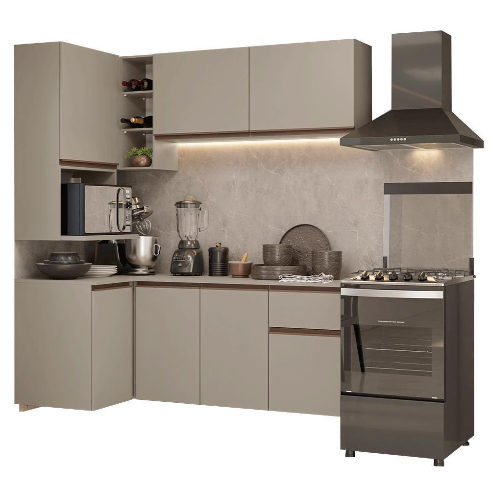 Armário De Cozinha Completa De Canto 265 Cm Suspensa Crema Nice Madesa 06