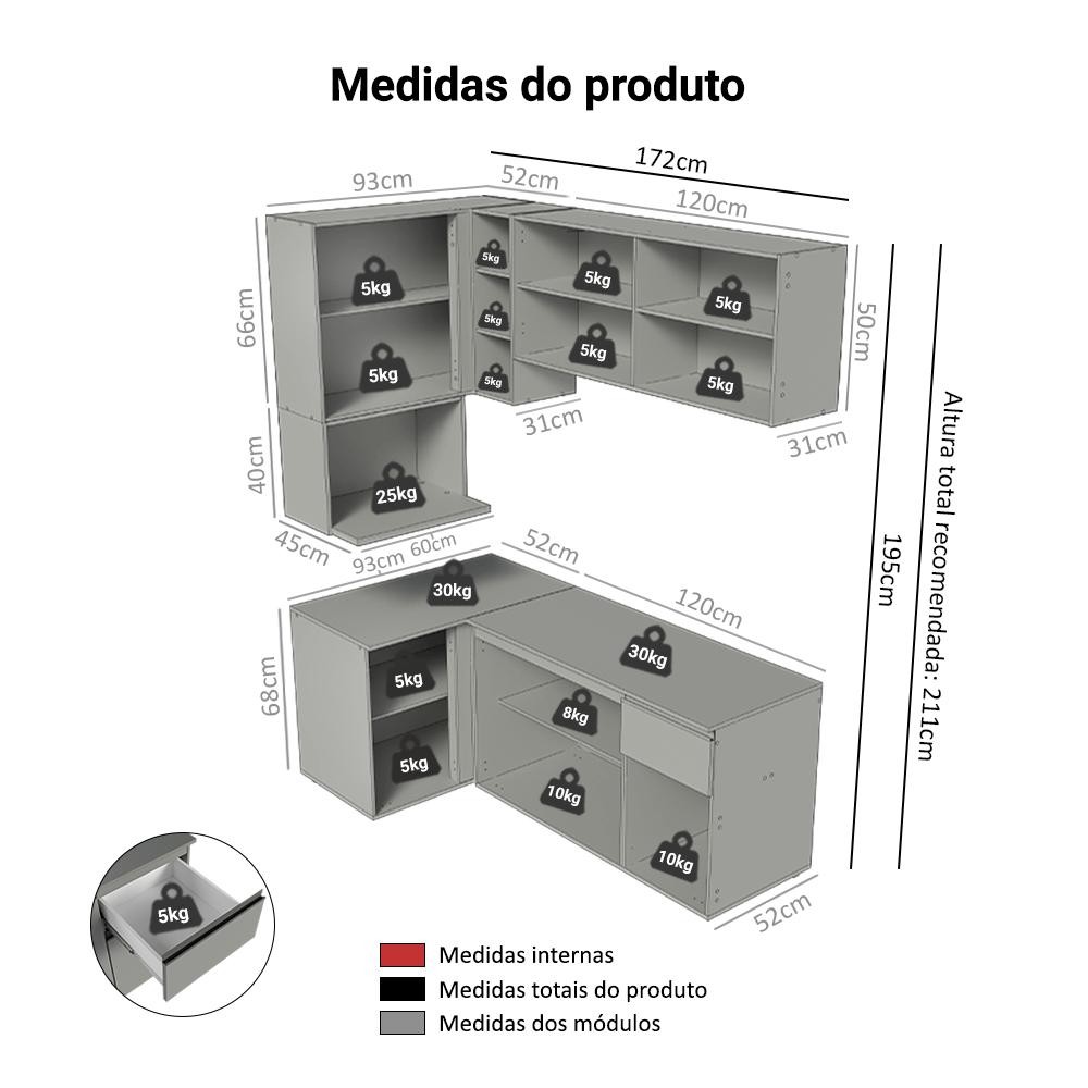 Armário de Cozinha Completa de Canto 265 cm Suspensa Nice Madesa 06