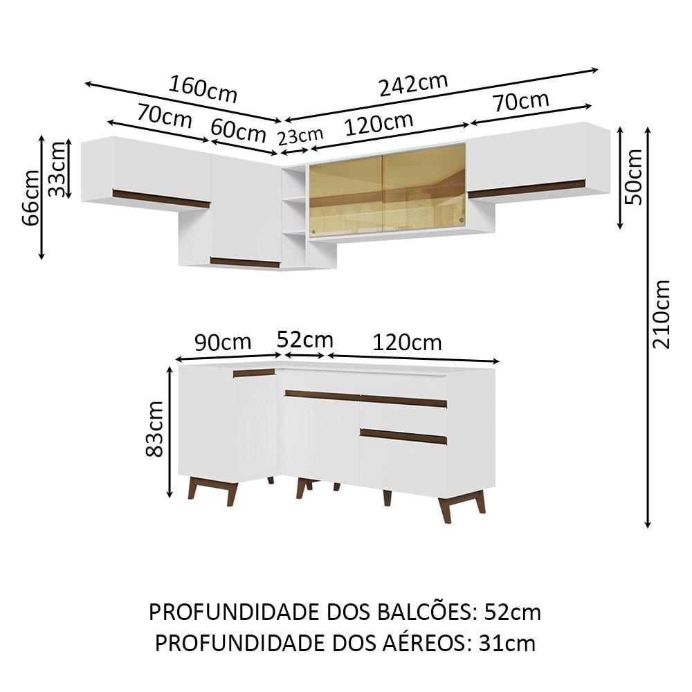 Armário de Cozinha Completa de Canto 402cm Branco Reims Madesa 04