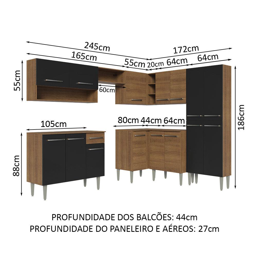 Armário de Cozinha Completa de Canto 417cm Preto/Rustic Emilly Madesa 02