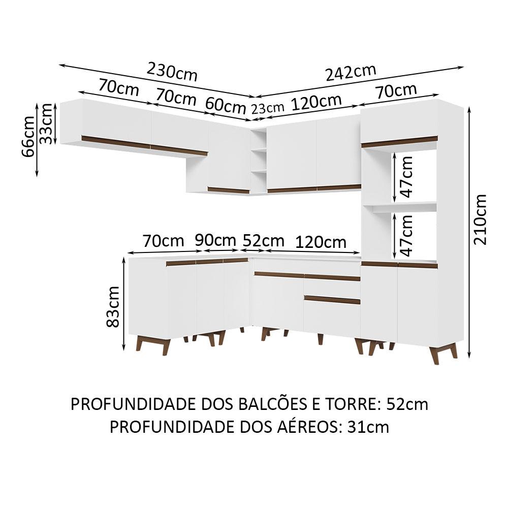 Armário de Cozinha Completa de Canto 472cm Branco Reims Madesa 01
