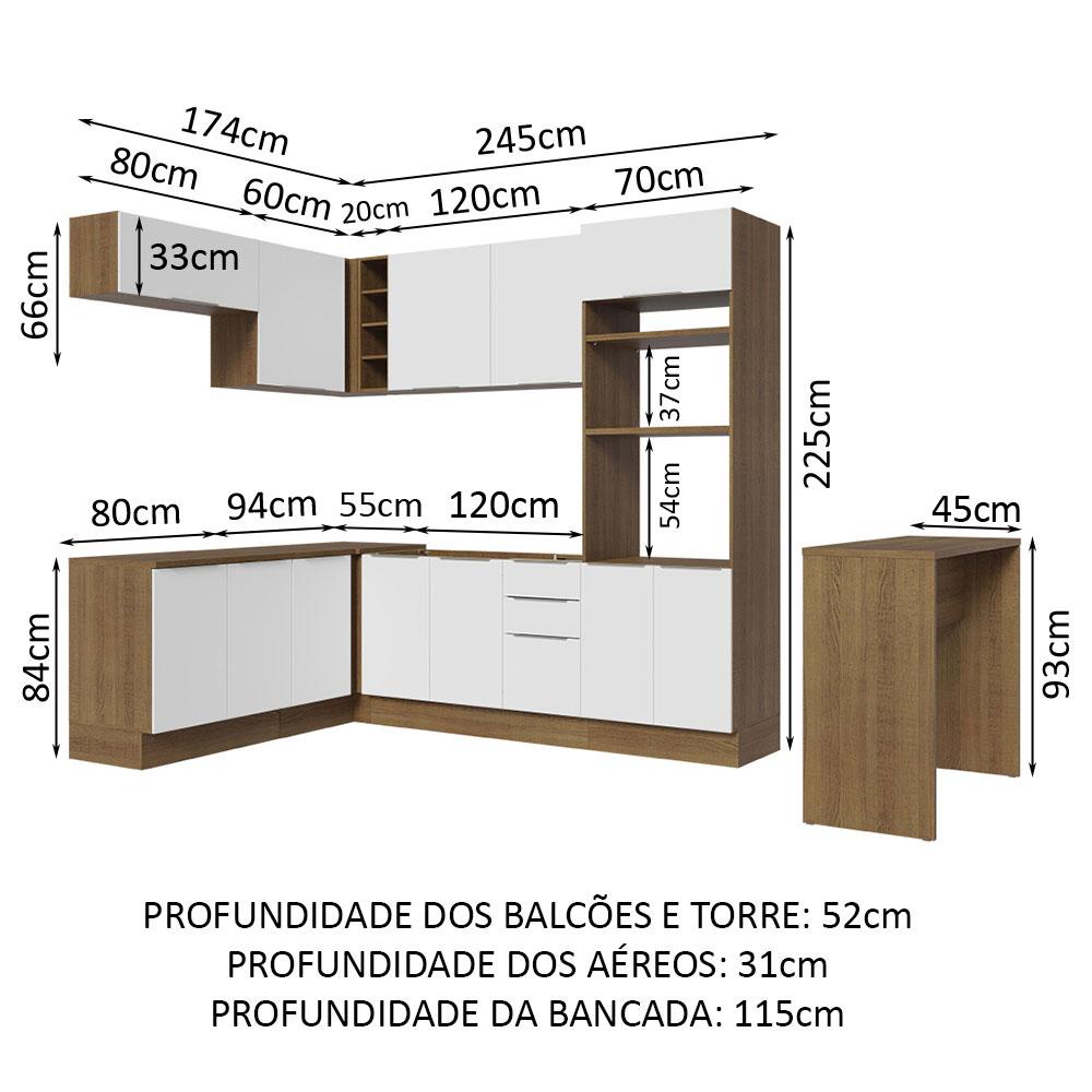 Armário de Cozinha Completa de Canto 489cm Rustic/Branco Stella Madesa