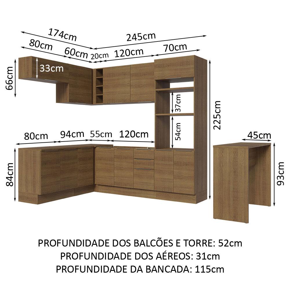 Armário de Cozinha Completa de Canto 489cm Rustic Stella Madesa