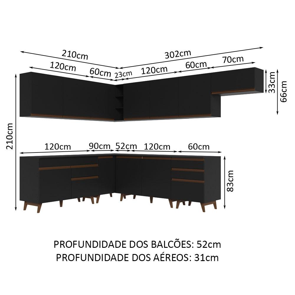 Armário de Cozinha Completa de Canto 512cm Preto Reims Madesa 01