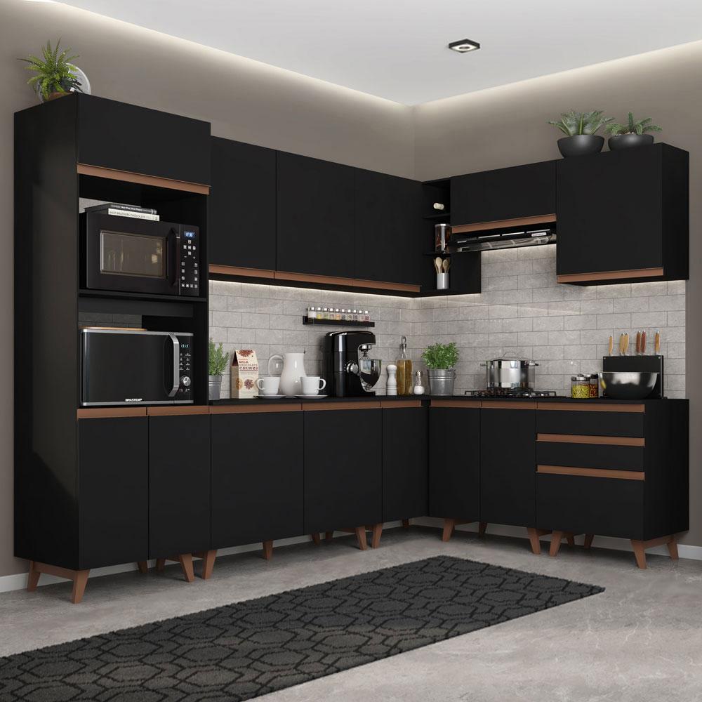 Armário de Cozinha Completa de Canto Madesa Reims 462001 com Balcão - Preto