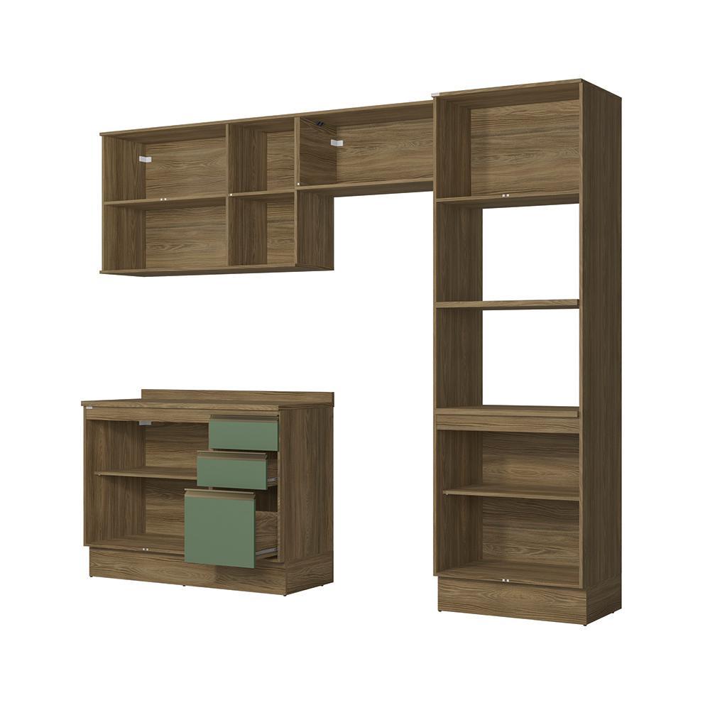 Armário de Cozinha Completa Torre Quente 100% MDF 270cm Nogueira/Verde Celeste Kappesberg