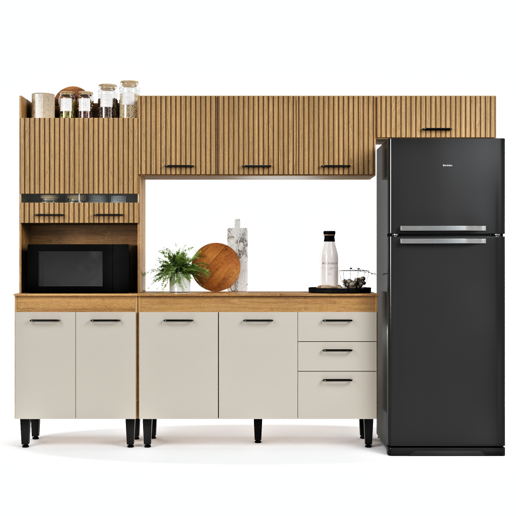 Armário de Cozinha Completa Veneza Grande com Nicho 2 Gavetas e 11 Portas para Microondas e Forno MD
