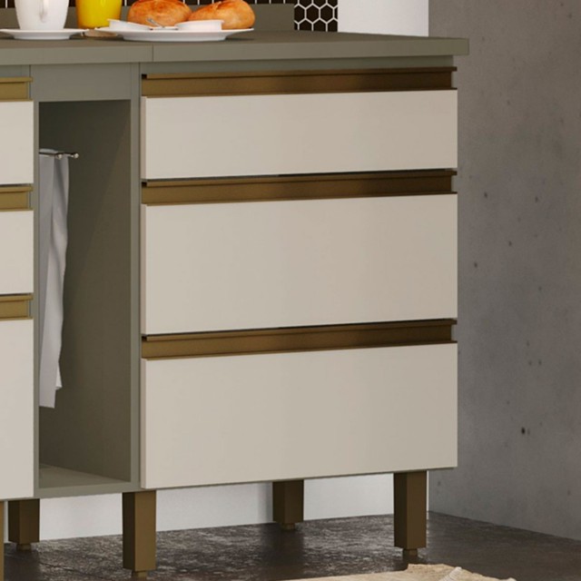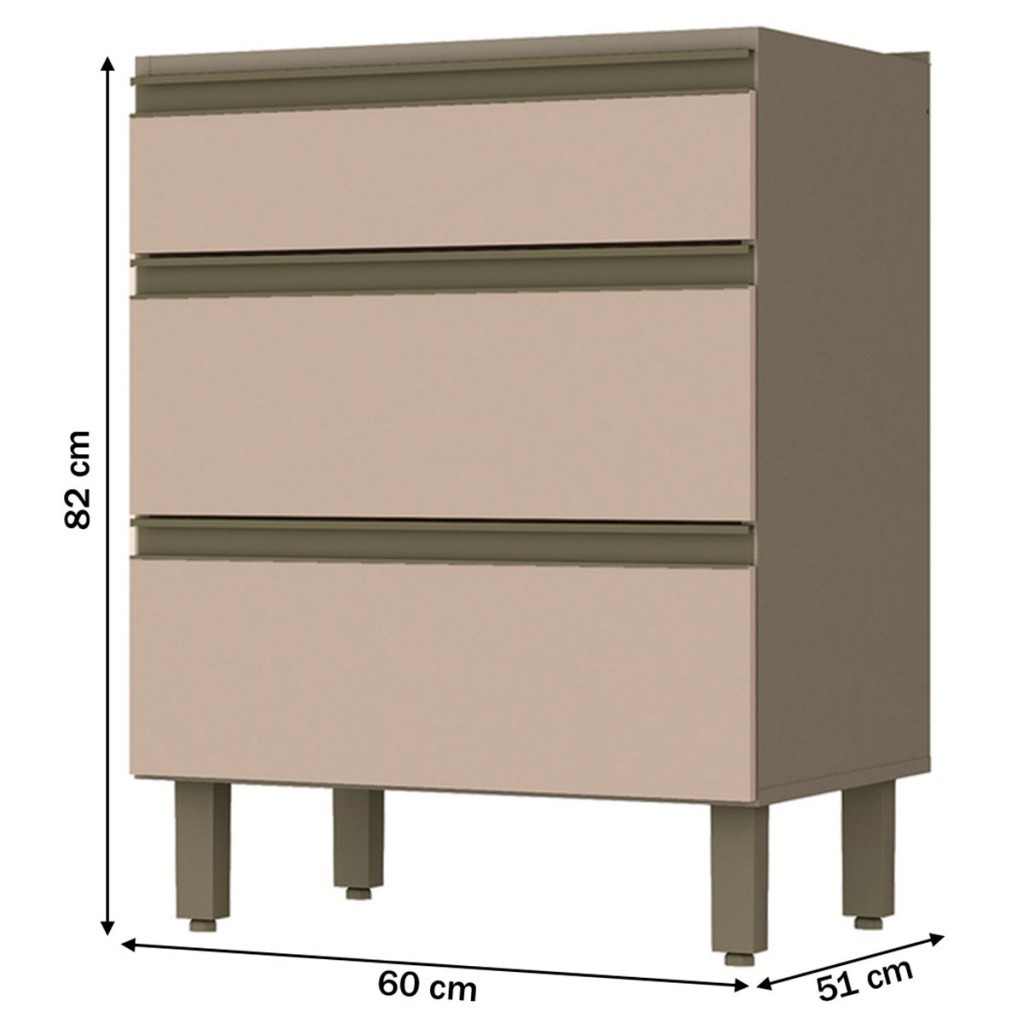 Armário de Cozinha Évelin 3 Gavetas Duna/Cristal - Henn