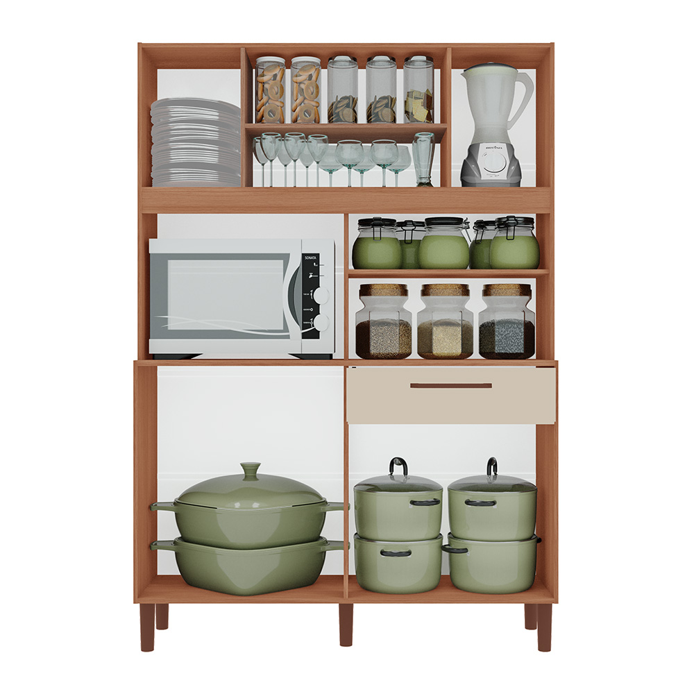 Apresentamos o Armário de Cozinha Icaraí! O Armário Icaraí é funcional e elegante, destacando-se pelos puxadores na cor cobre que conferem um toque sofisticado. Possui uma excelente divisão interna, facilitando a organização. A pintura touch oferece um acabamento moderno e resistente. As corrediças telescópicas garantem suavidade na abertura e fechamento das gavetas, enquanto os pés em PVC asseguram durabilidade. Com 7 portas, é ideal para quem busca praticidade e estilo. Imagem Ambientada Meramente Ilustrativa, Itens de Decoração e demais Produtos não fazem parte da Oferta.