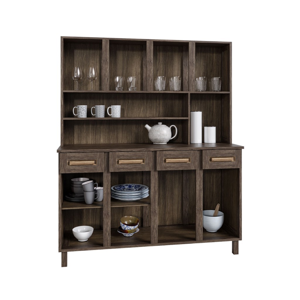 Armário de Cozinha Maranhão 8 Portas 4 Gavetas com Vidro Imbuia Natural - Rodmóveis