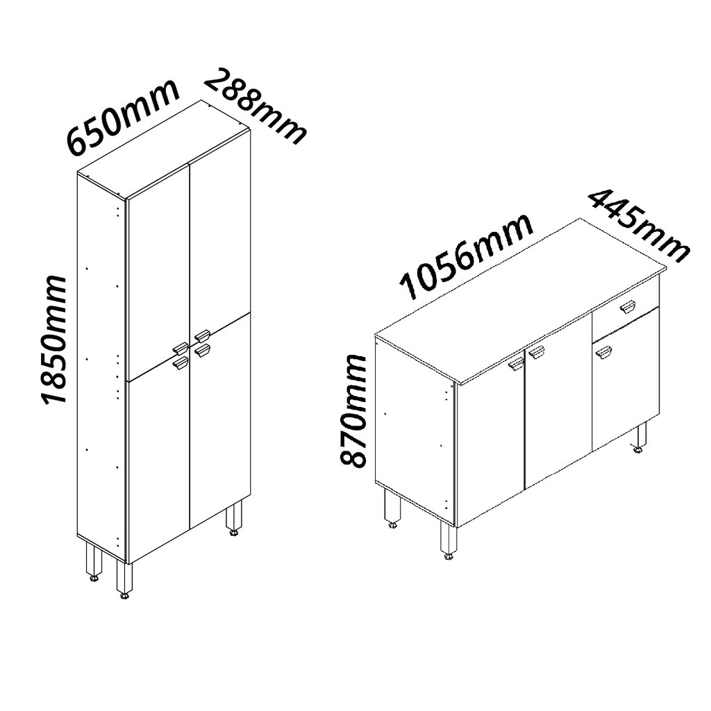 COZINHA MADRID CONJUNTO BALCÃO 105 + TORRE 065 A linha de Cozinha Madrid reúne praticidade, delicadeza e modernidade em seu design. Fabricados em material resistente, chapas 100% em MDF, e diferenciada pintura em uv-ultravioleta. Este é um conjunto de armários modulados, ideal para otimizar o espaço e a organização da sua cozinha. O conjunto é composto por um armário torre com quatro portas e um módulo balcão inferior com uma gaveta e três portas, ambos na cor branca. Puxadores em poliestireno de detalhes chanfrados e delicados, corrediças telescópicas e dobradiças metálicas. O design é moderno e clean, combinando com diversos estilos de decoração. As portas e gaveta são espaçosas, oferecendo uma excelente capacidade de armazenamento para utensílios, alimentos e outros itens essenciais da cozinha. Este conjunto é perfeito para quem busca funcionalidade e elegância na cozinha. Material: MDF Acabamento UV; Torre 065: Altura: 1850mm Largura: 650mm Profundidade: 288mm 04 portas Balcão 105: Altura: 870mm Largura: 1056mm Profundidade: 445mm 03 portas 01 gaveta *Fundo do balcão é vazado OBSERVAÇÕES: *Montagem não inclusa. *Itens de decoração não inclusos. *Verificar descrição e tamanho do produto antes da compra. *A transportadora entregará o produto no andar térreo do endereço de entrega. *Imagens meramente ilustrativas. A cor pode variar de acordo com a iluminação do ambiente. *Não nos responsabilizamos por subir escadas, corredores e elevadores ou transporte por guincho em apartamentos. *Não nos responsabilizamos pela montagem e desmontagem do produto no ato da entrega e devolução, assim como os custos gerados nestas situações.