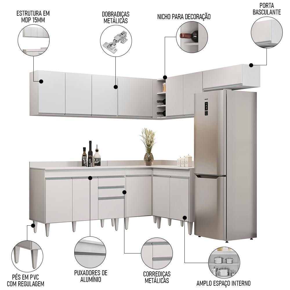 Armário de Cozinha Modulado de Canto 7 Peças CP20 Balcão com Tampo Branco - Lumil