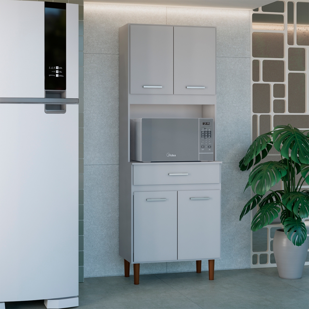 Armário de Cozinha Multiuso 4 Portas e Gaveta com Nicho Microondas e Forno Organizador Compacto