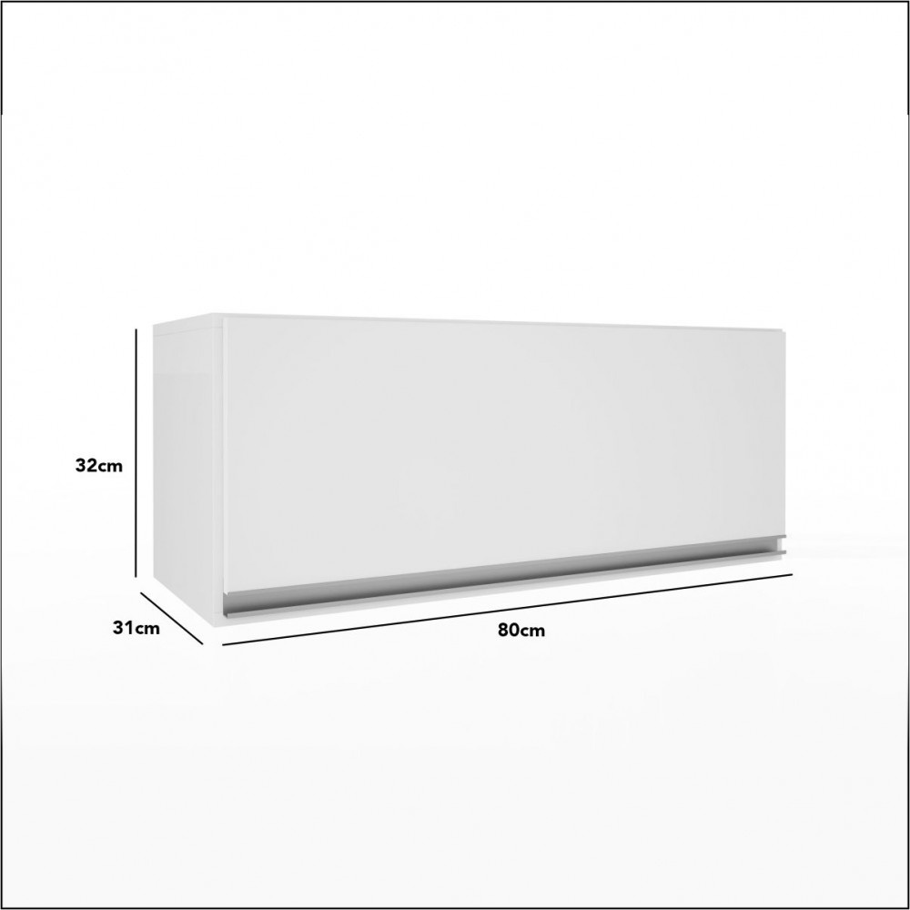 Armário de Cozinha Suspenso Multiuso Aéreo Com 1 Porta Top Class 80cm Branco Brilho Batrol