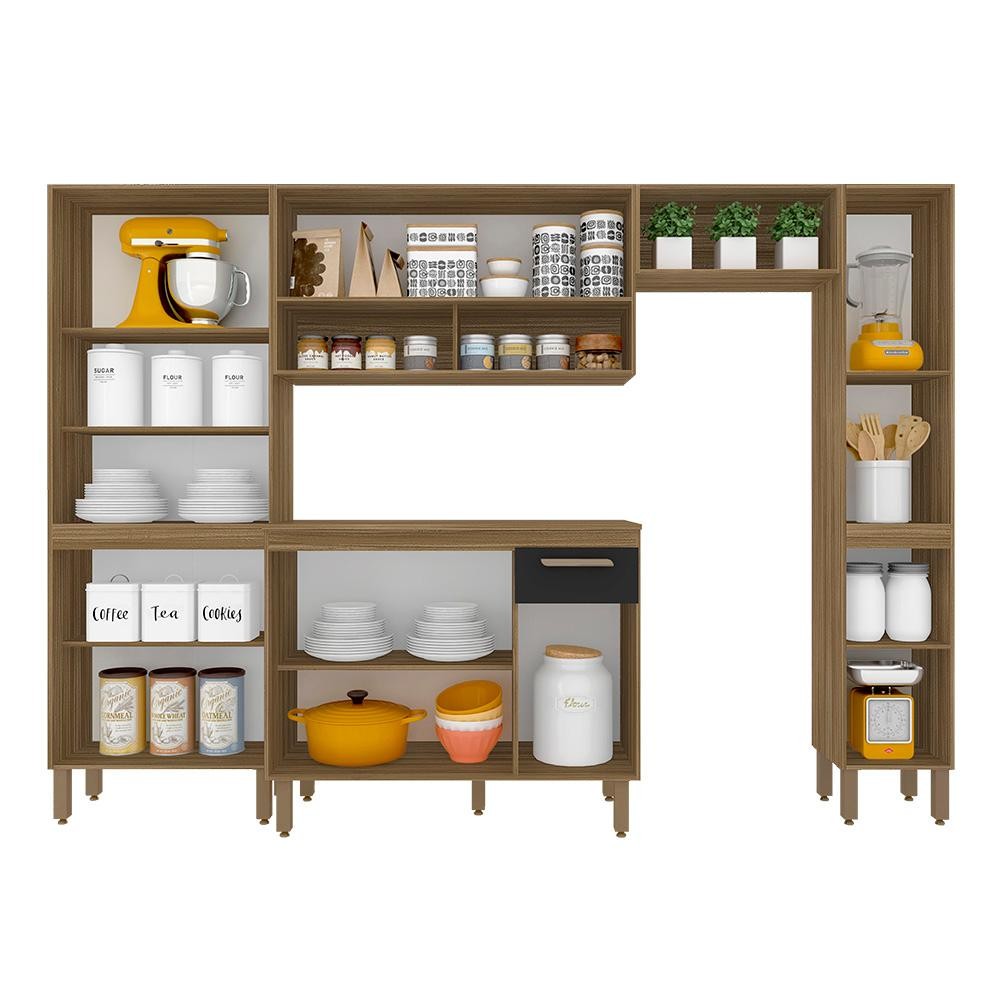 Armário De Cozinha Tieli 5 Peças Boreal/preto - Móveis Arapongas