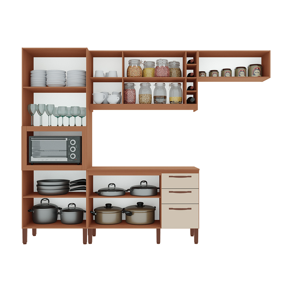 Armário de Cozinha Tuboarte Larissa 100% MDF com Balcão 9 Portas 3 Gavetas e Adega