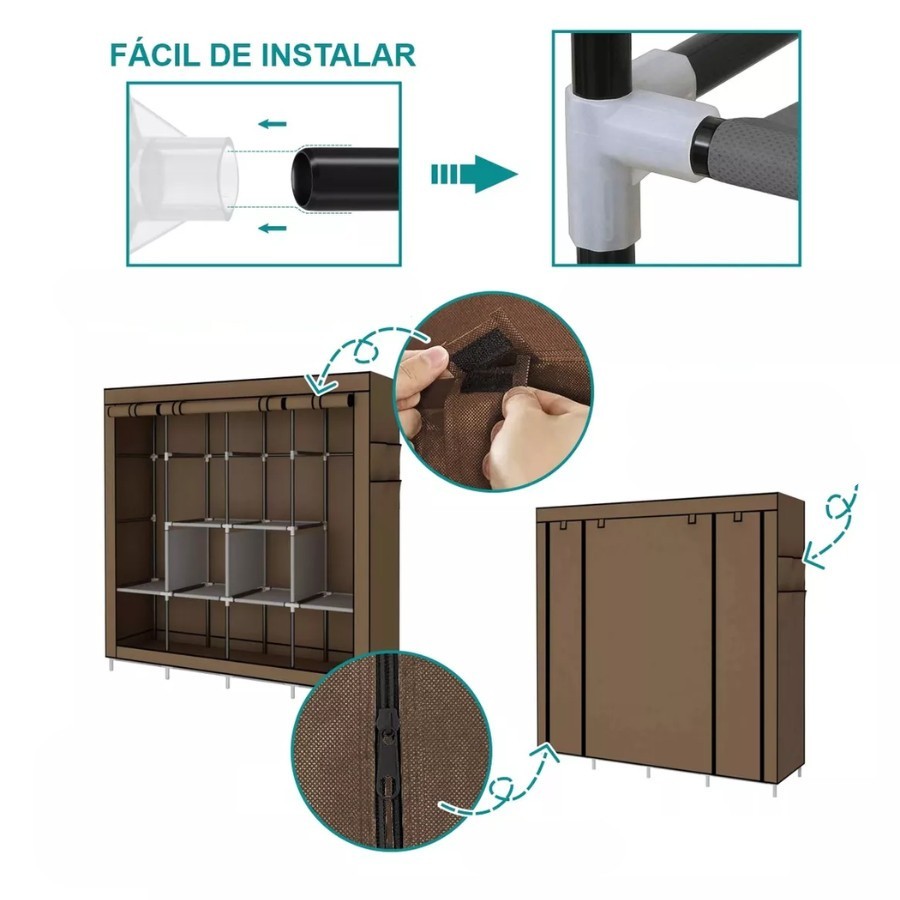 Guarda-Roupa Portátil - a solução perfeita para manter suas roupas organizadas, otimizar espaço e adicionar um toque de elegância ao seu ambiente. ️Organização Inteligente: Este guarda-roupa portátil é projetado com recursos inteligentes para facilitar a organização de suas roupas. Possui compartimentos ajustáveis e prateleiras removíveis, permitindo que você personalize o espaço de acordo com suas necessidades. Diga adeus à bagunça e encontre suas roupas rapidamente com a máxima praticidade. ️Durabilidade e Qualidade: Fabricado com materiais de alta qualidade, esse armário portátil é robusto e resistente, garantindo uma longa vida útil e proteção eficiente para suas roupas favoritas. ️Espaço Amplo: Este armário inteligente possui espaço suficiente para acomodar todas as suas roupas, calçados e acessórios, mantendo-os em ordem e à mão. ️Versatilidade: Além de armazenar roupas, você pode usar esse armário inteligente para organizar livros, brinquedos, objetos pessoais e muito mais. Afinal, organização é sinônimo de conforto e bem-estar em todos os aspectos da vida.️ Style:Vintage Assembly:Assembly Required Material:Plastic + metal